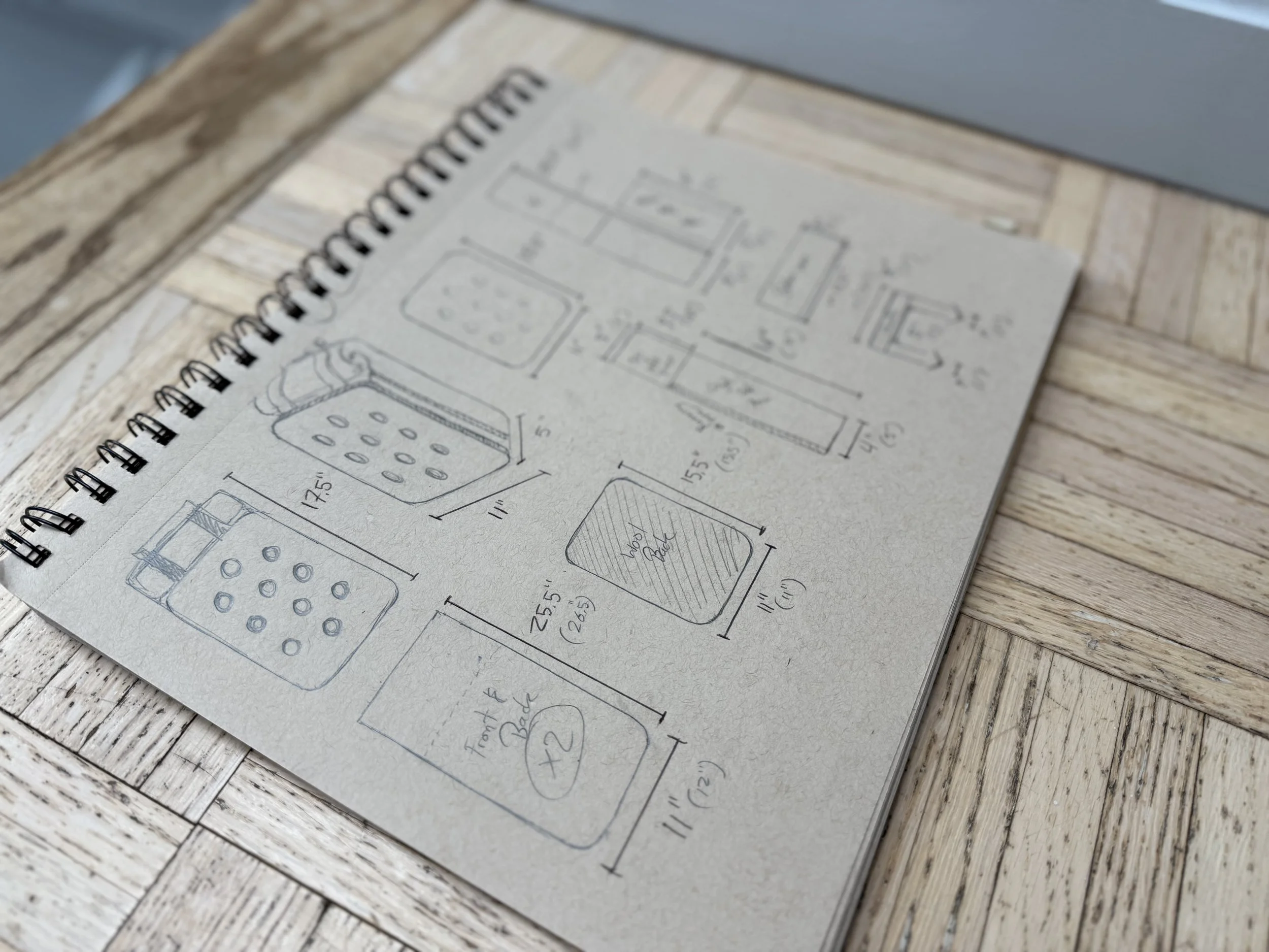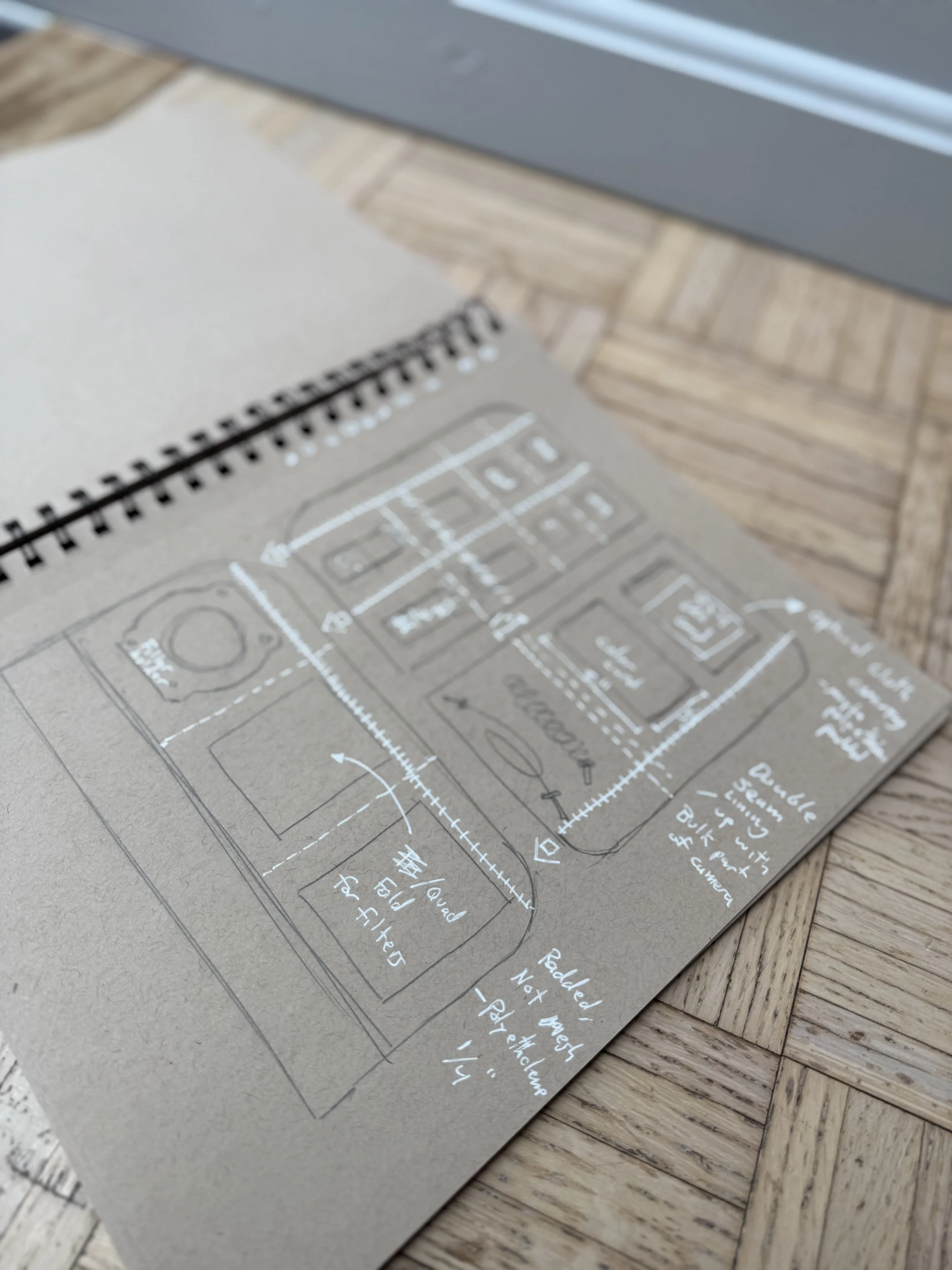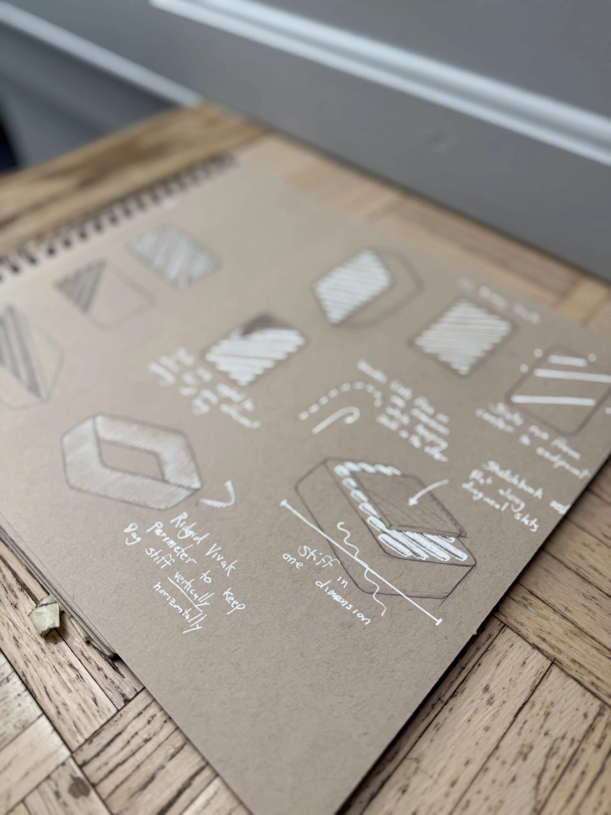 Maintaining a constant sketchbook has been an integral part of my design practice throughout my entire career. This dedicated space allows me to quickly capture initial ideas, serving as a direct link between concept and creation. The act of sketching by hand enables me to explore forms, details, and proportion in real time, fostering a more intuitive understanding of the design before moving into the digital realm. These pages are not just a repository of rough notes but a vital tool for refining and evolving ideas that eventually take shape as tangible products.