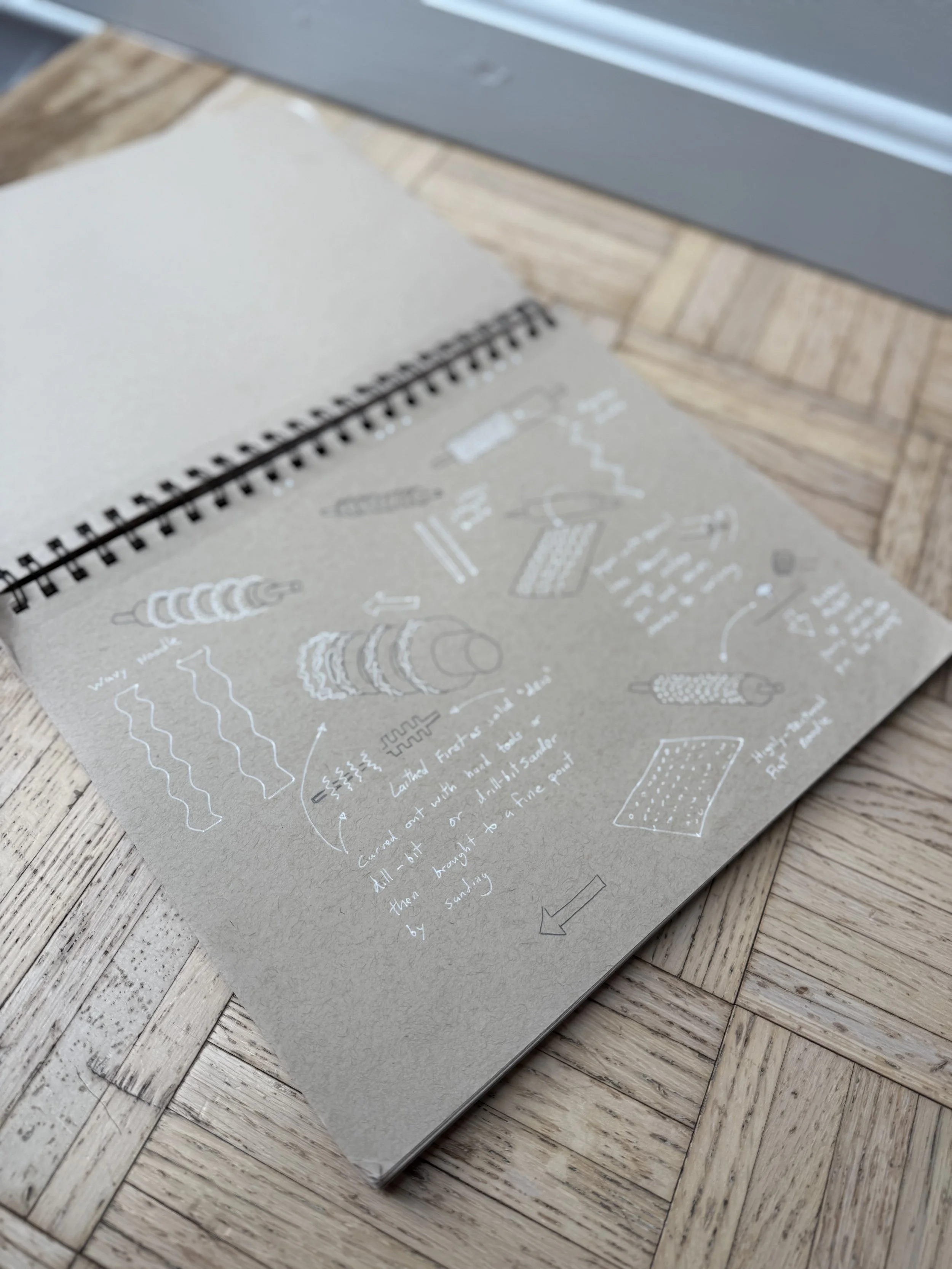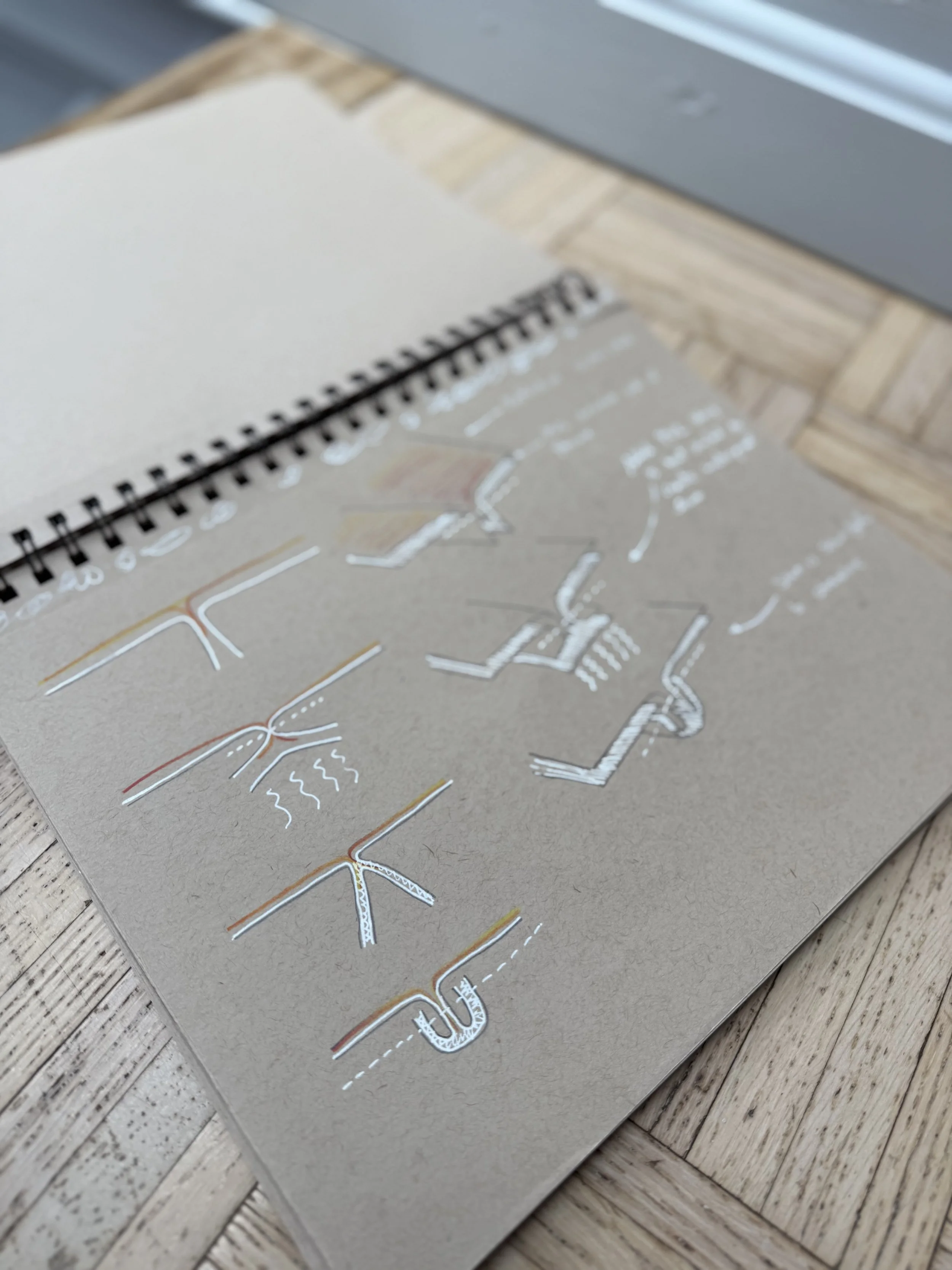 While I often rely on computer programs to finalize designs and prepare them for production, I have cultivated a strong affinity for the simplicity and immediacy of pencil and paper. This traditional medium demands a level of discipline and presence that enhances my creative process. I intentionally reserve time to work in my sketchbook, ensuring that this craft remains a constant in my workflow. This balance between analog and digital methods enriches the depth and authenticity of my designs, grounding innovation in hands-on exploration.