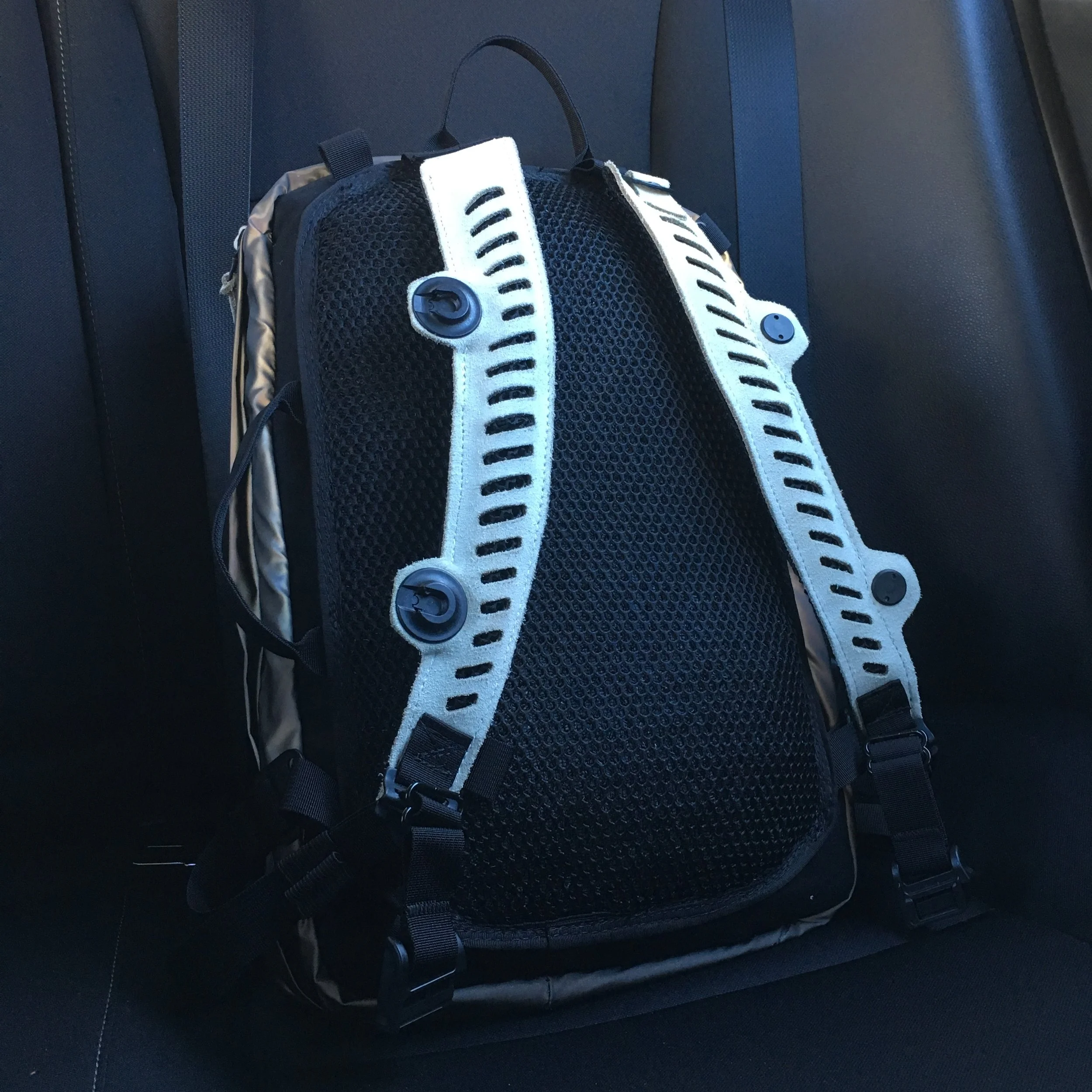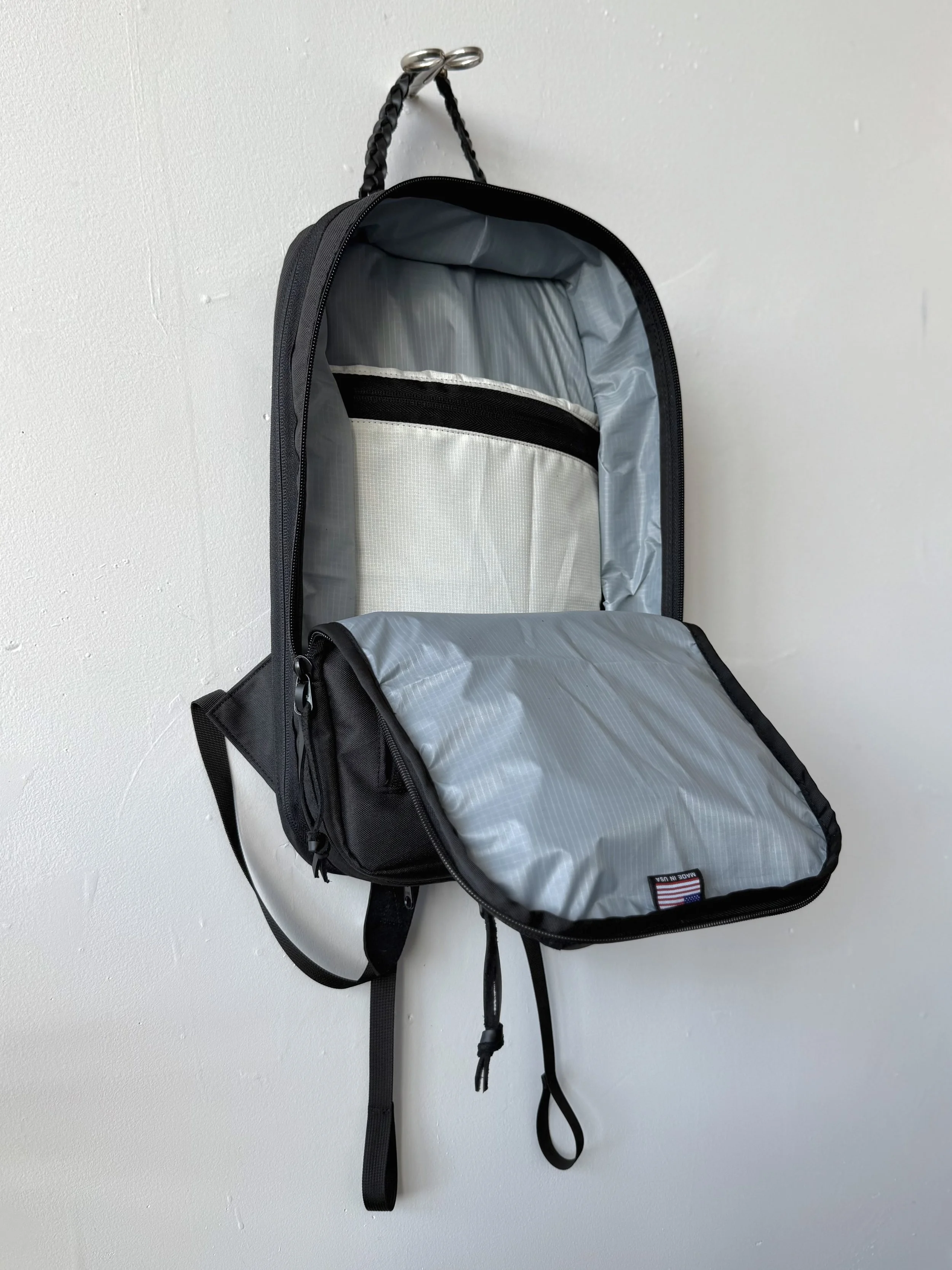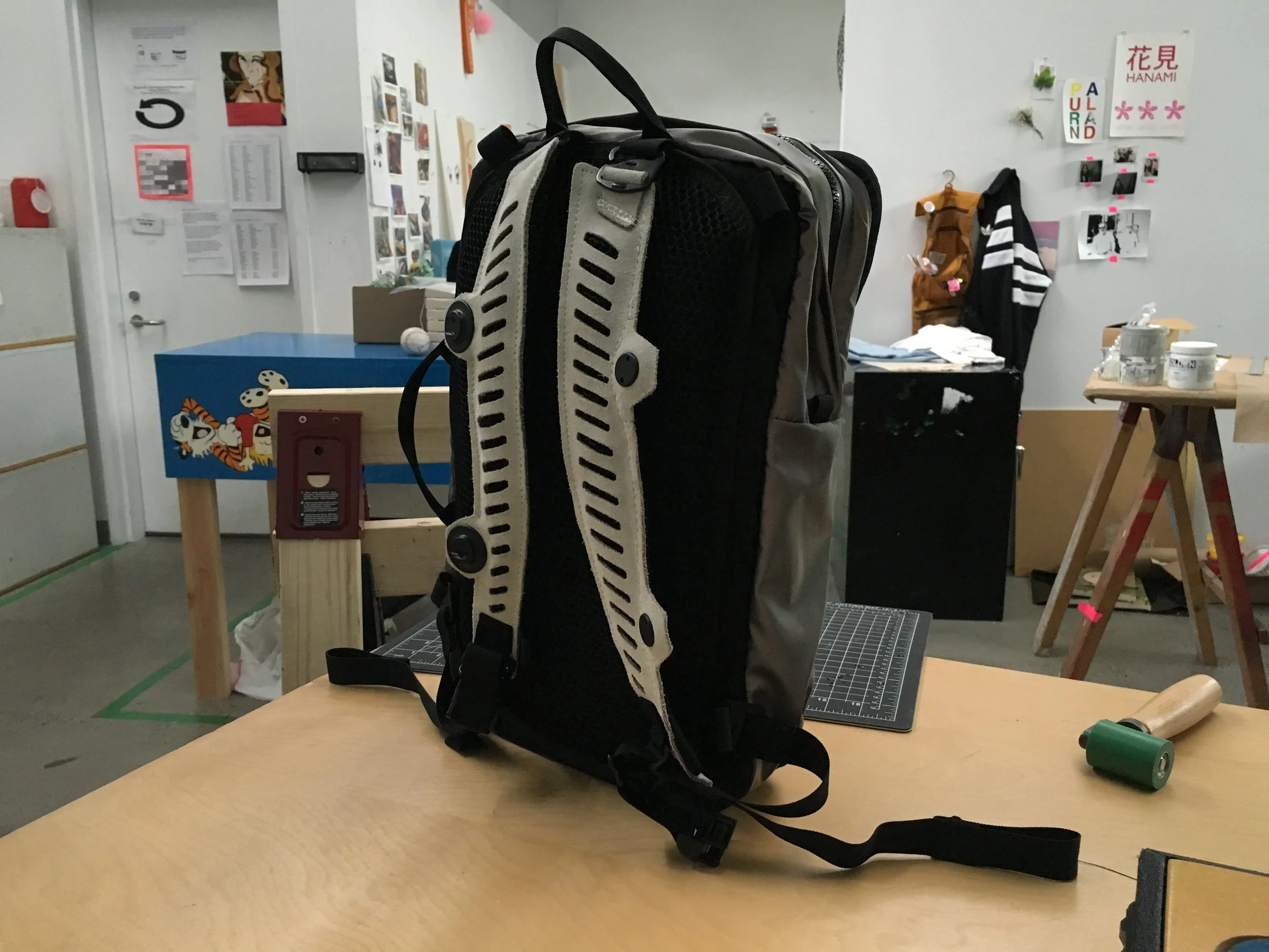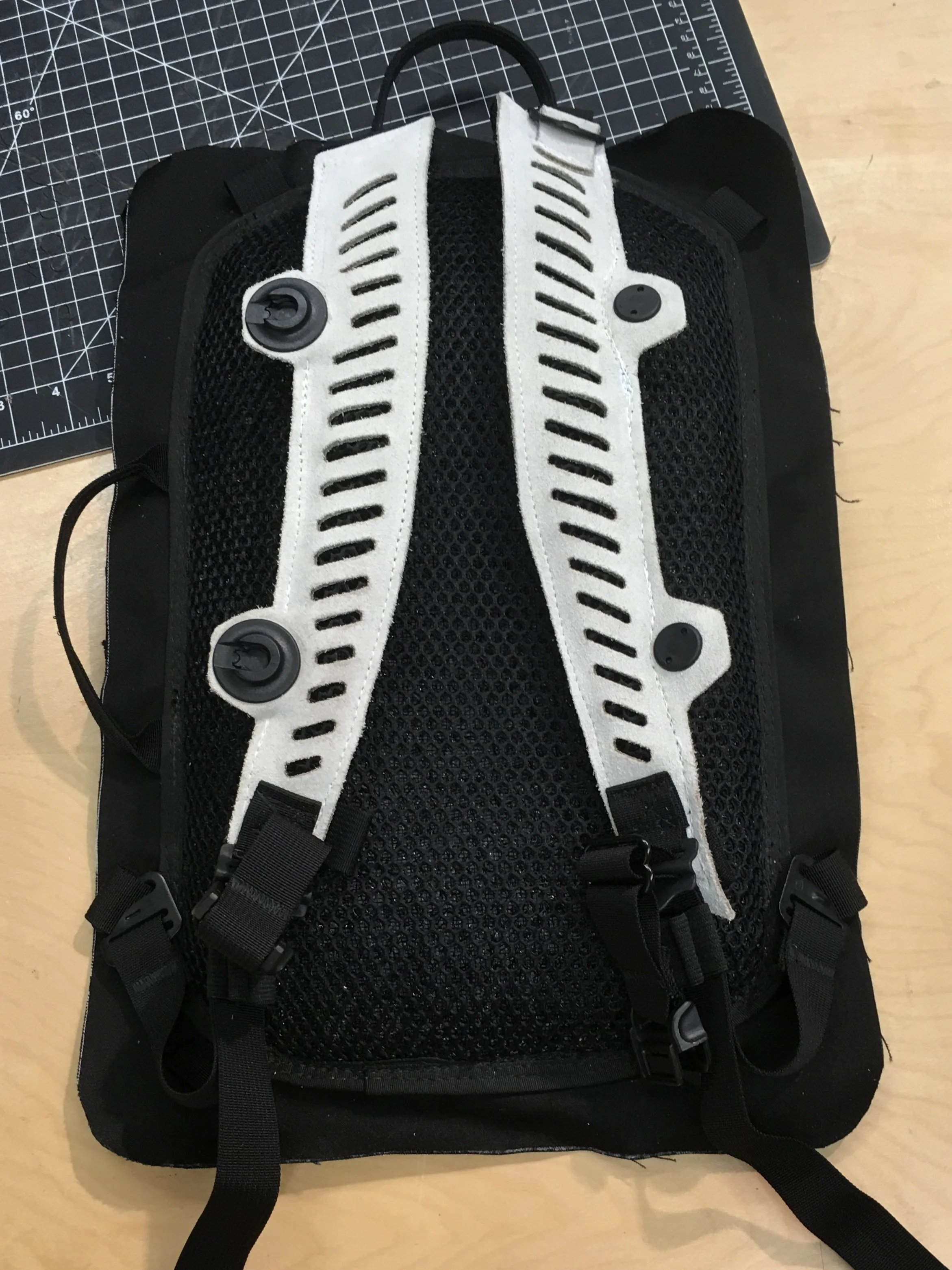 Many of the innovations featured in these prototypes stem directly from my own dedicated research and development efforts, showcasing a commitment to pushing the boundaries of what is possible in softgoods design. For instance, I have perfected an intricate method for laser-cutting leather suede that avoids burning or discoloration, thus preserving the material’s natural integrity, texture, and aesthetic appeal. I’ve also introduced an eco-friendly, non-toxic fabric (originally developed for use in lunch bags), as a waterproof liner in travel bags, effectively enhancing sustainability measures without compromising durability or performance. Furthermore, the integration of newly released Fidlock magnetic snaps facilitates a transformative modularity in backpack straps, enabling them to seamlessly join together into a single strap, which fundamentally alters the orientation, comfort, and functionality of the bag in practical, innovative ways.