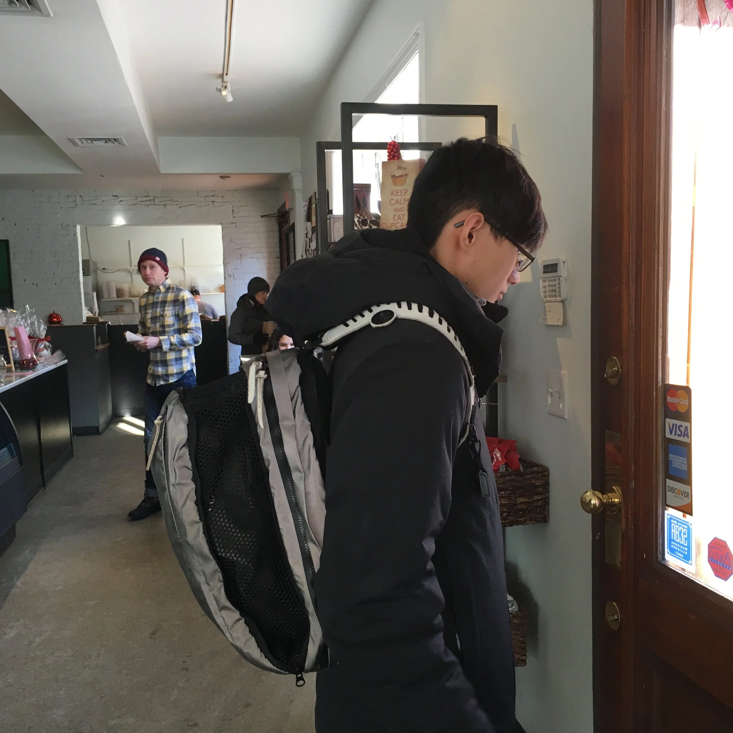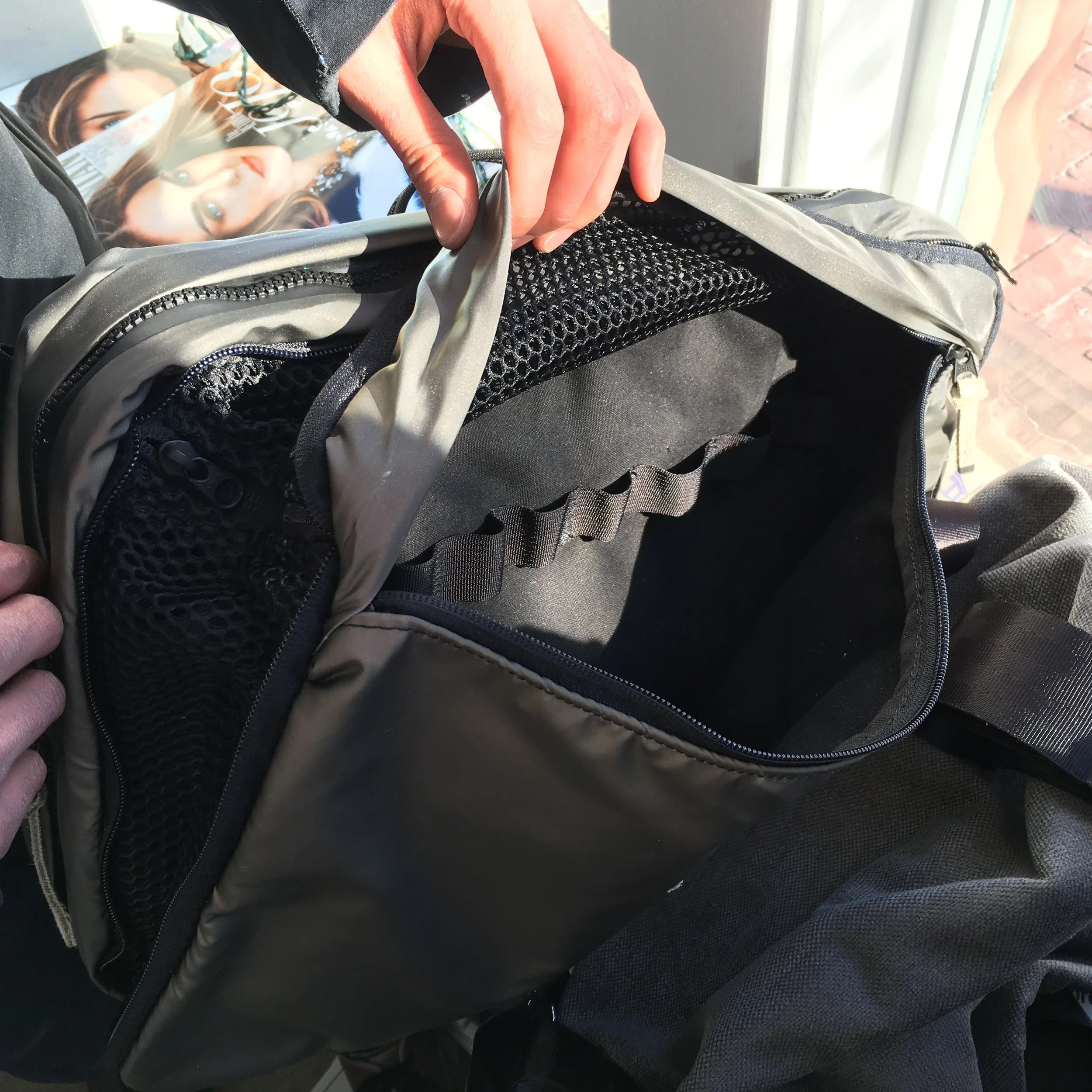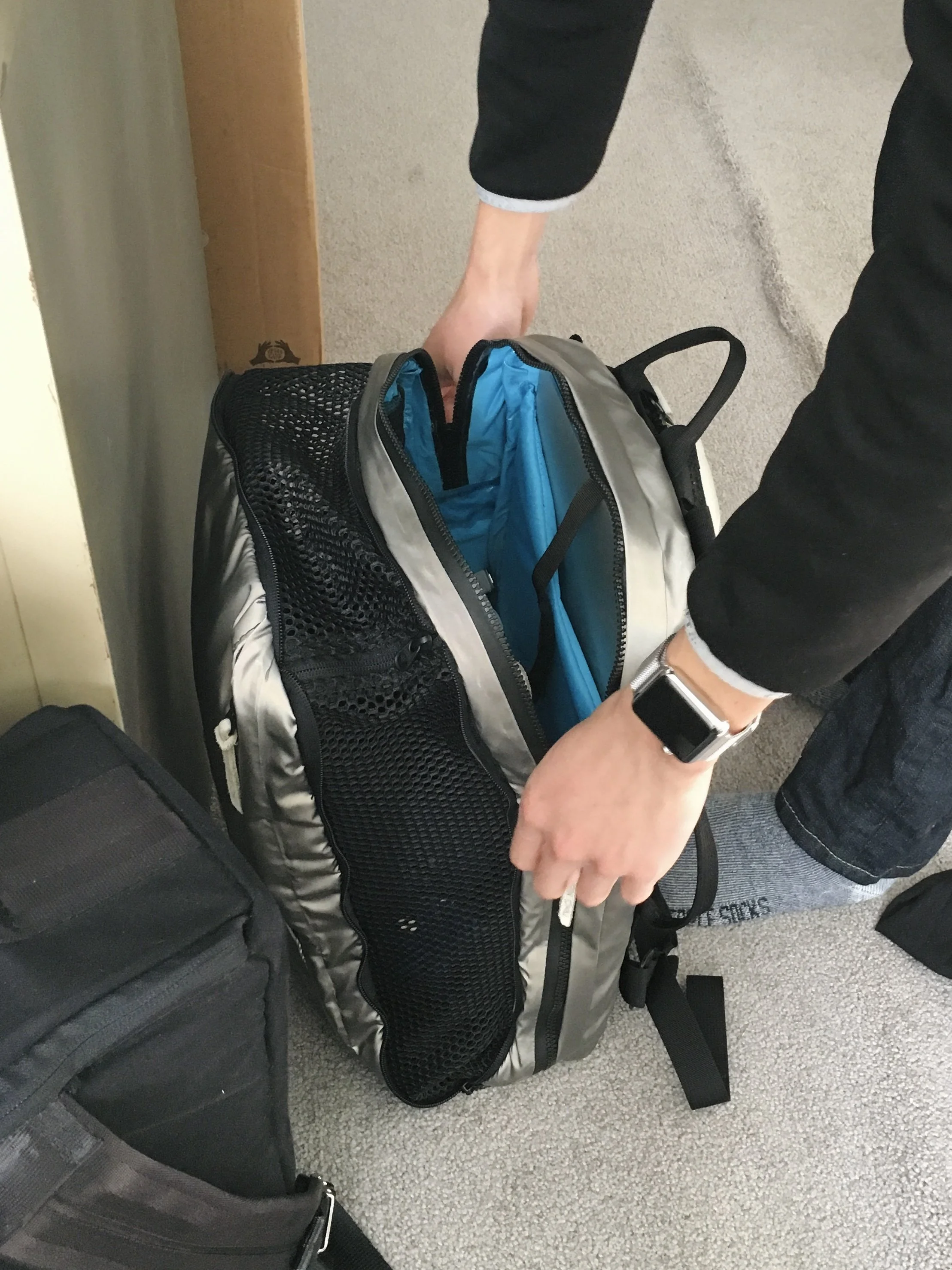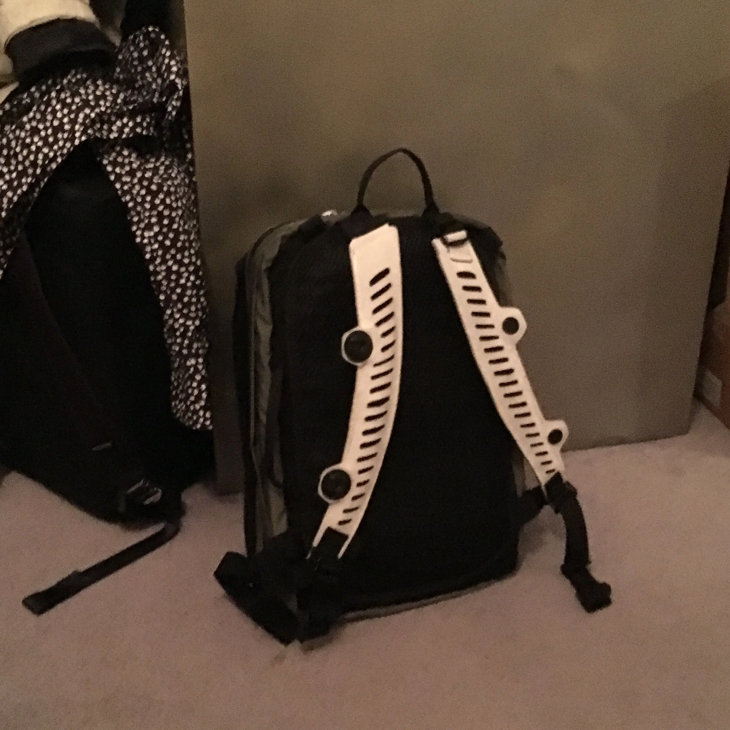 Many of the innovations featured in these prototypes stem directly from my own dedicated research and development efforts, showcasing a commitment to pushing the boundaries of what is possible in softgoods design. For instance, I have perfected an intricate method for laser-cutting leather suede that avoids burning or discoloration, thus preserving the material’s natural integrity, texture, and aesthetic appeal. I’ve also introduced an eco-friendly, non-toxic fabric (originally developed for use in lunch bags), as a waterproof liner in travel bags, effectively enhancing sustainability measures without compromising durability or performance. Furthermore, the integration of newly released Fidlock magnetic snaps facilitates a transformative modularity in backpack straps, enabling them to seamlessly join together into a single strap, which fundamentally alters the orientation, comfort, and functionality of the bag in practical, innovative ways.