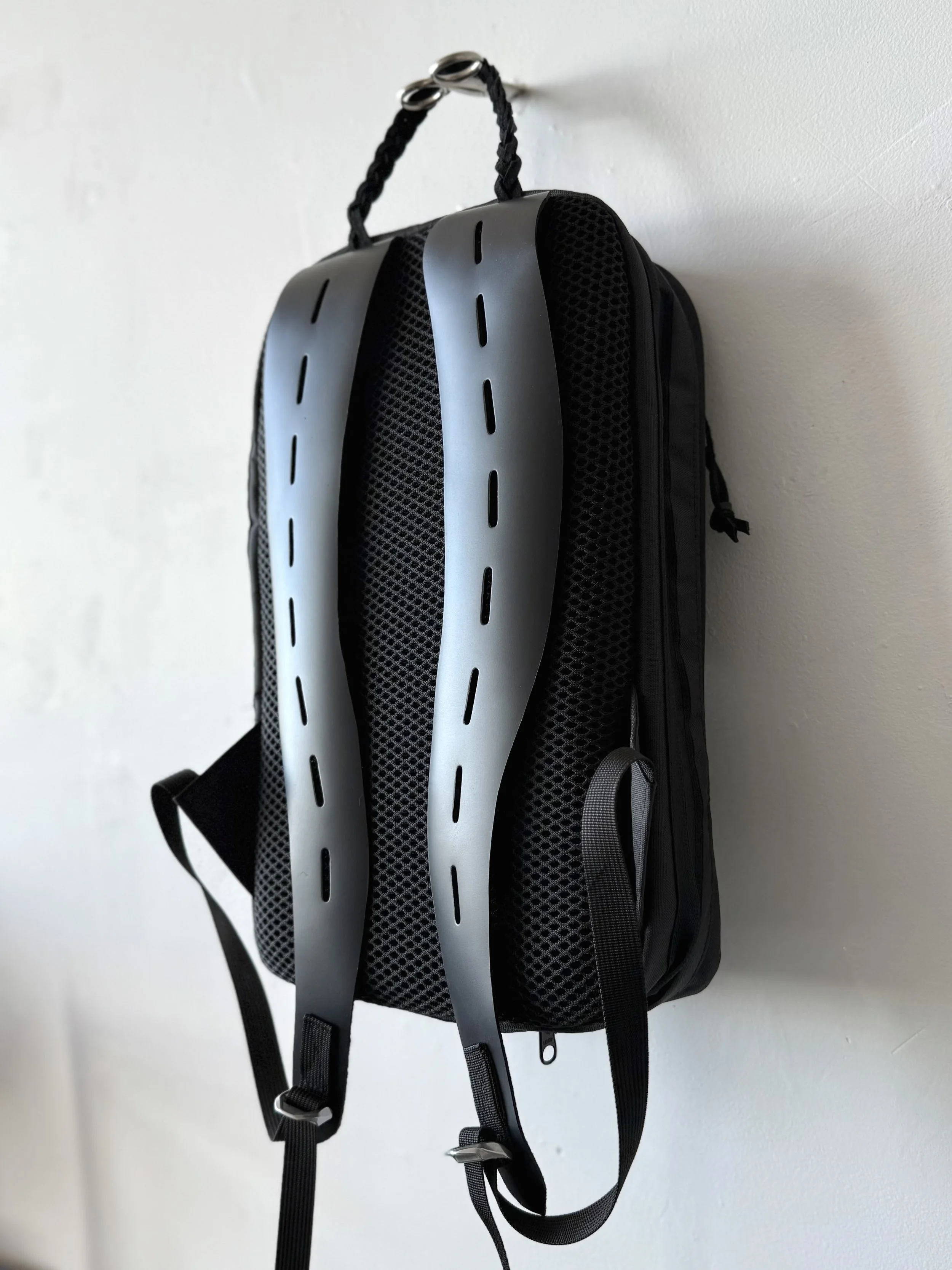 The technical prototype bags I have designed represent the culmination of hands-on craftsmanship combined with cutting-edge innovation and thoughtful design principles. Each piece is meticulously constructed by hand in my studio, embodying a deliberately rigorous personal practice that seamlessly bridges the gap between traditional artisan skills and advanced technological processes. These bags incorporate the latest advancements applicable to softgoods, encompassing not only novel materials and manufacturing techniques but also groundbreaking functional applications that elevate everyday usability and style.